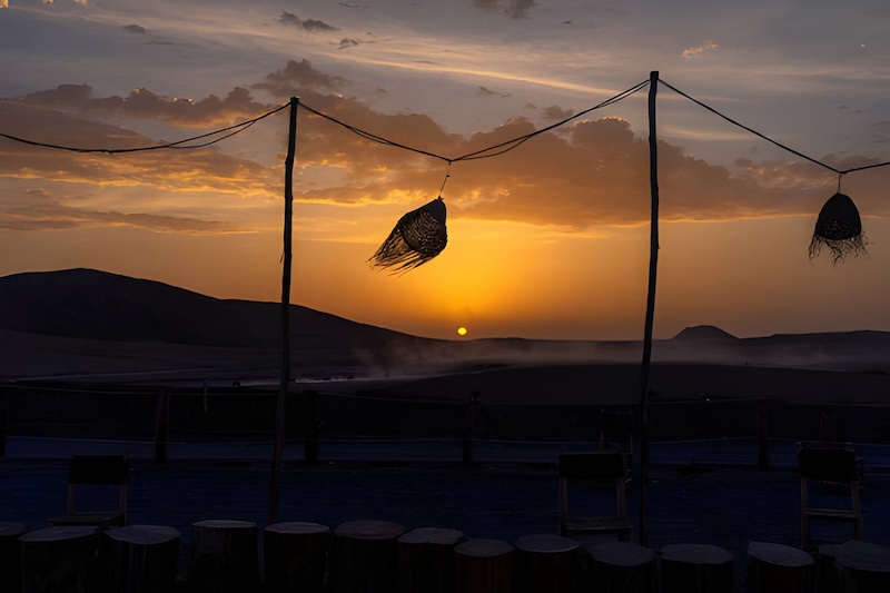 • Noche en campamento tradicional en el desierto, con cena y música bereber.
